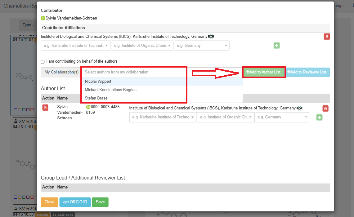 - First, ensure authors are in your collaboration list using the My Collaborations function.