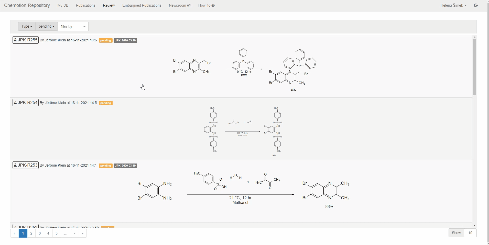Embargoes can be used to prepare data at any time and release the data at any time that is desired. The setting of an embargo is described briefly on the page submitting data. As embargoes are typically used for a set of data, e.g. all reactions belonging to a planned publication, Chemotion repository offers embargo bundles (= embargo collections to be assigned to all data belonging to one publication). Each embargo bundle will result in the publication of a dataset with one dataset DOI (= collection DOI, see section below).